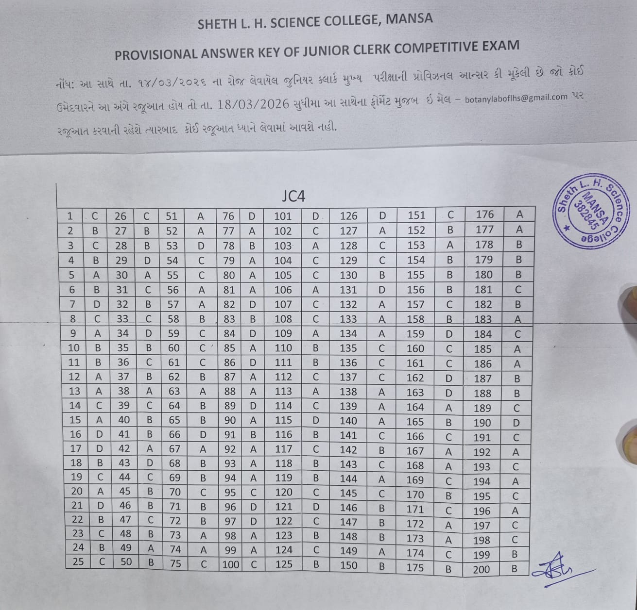 જુનિયર ક્લાર્ક ની પરીક્ષા ની ફાઇનલ આન્સર કી પ્રોવિઝનલ આન્સર કી ની સામે રજૂઆત કરવા માટેનું ફોર્મprovisional answer key jr. clerkprovisional answer key jr. clerkJUNIOR CLECK FINAL EXAMPROVISIONAL RESULTList Of Cancel ApplicationList of Eligible Candidates for the Post of Junior Clerkજુનિયર ક્લાર્ક પરીક્ષા સૂચનાજુનિયર ક્લાર્ક પ્રાથમિક પરીક્ષા આન્સર કીજુનિયર ક્લાર્ક ફાઈનલ આન્સર કીજુનિયર ક્લાર્ક ફાઈનલ પરિણામ